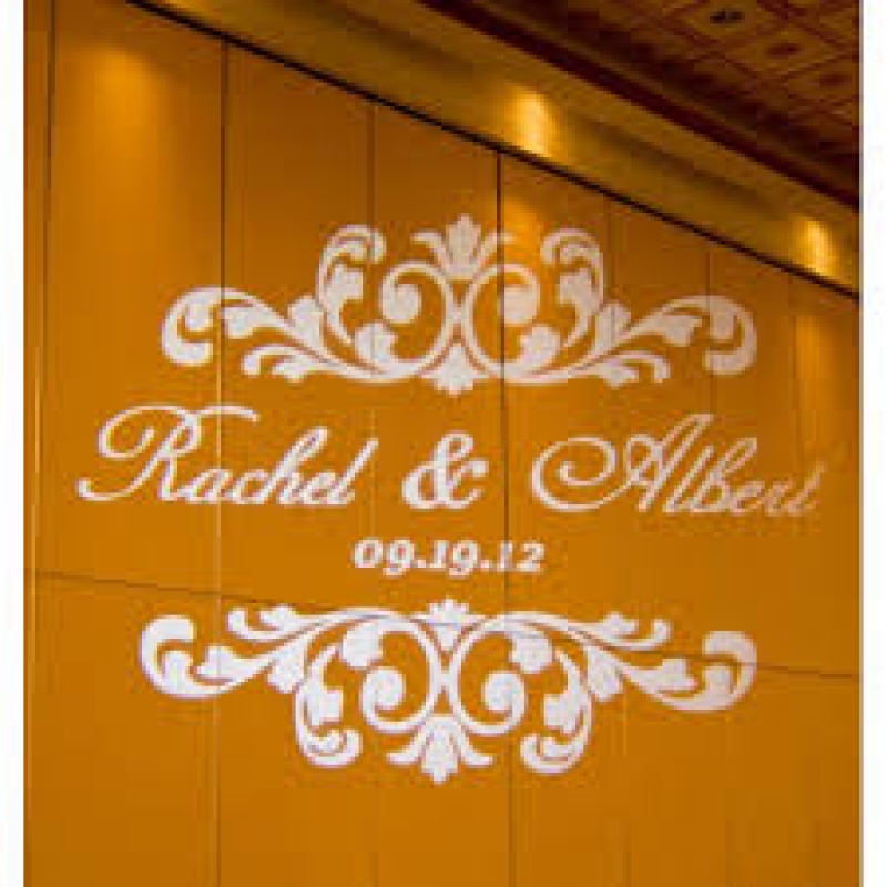 This is a personalised custom service whereby the bride and groom can have their names or initials cut into a small metal disc or etched onto a small glass disc which can then be projected onto a wall or floor.